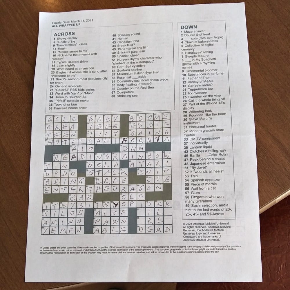 My dad and I chatted about random nothingness while we solved the puzzles. One of the puzzle's answers had to do with running a tab, the way people used to do before credit cards existed.